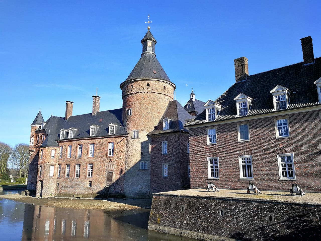 Links der Südflügel mit dem Museum und den Privaträumen der Besitzer