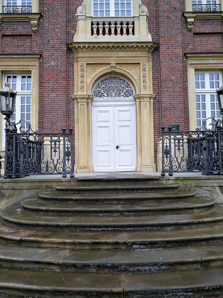 Portal im Hauptgebäude, in dem auch ein Restaurant untergebracht ist