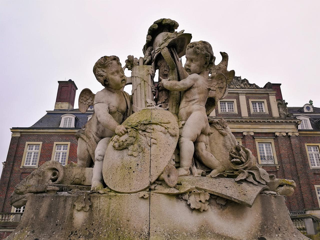 Skulptur auf der Gartenseite des Hauptgebäudes
