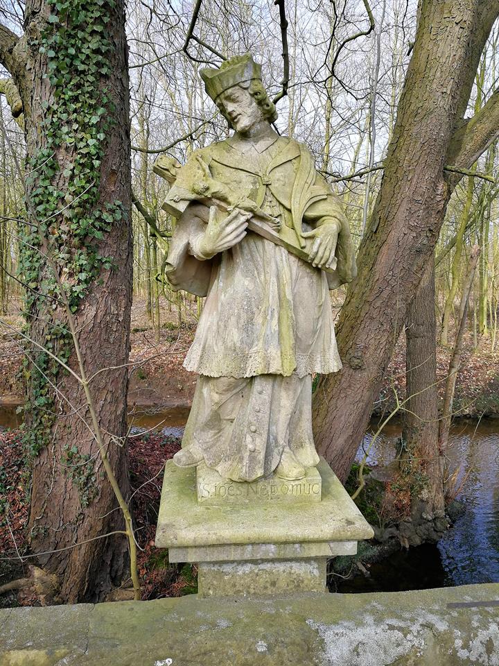 Nepomukskulptur am Gauxbach, gegenüber der Hauptzufahrt