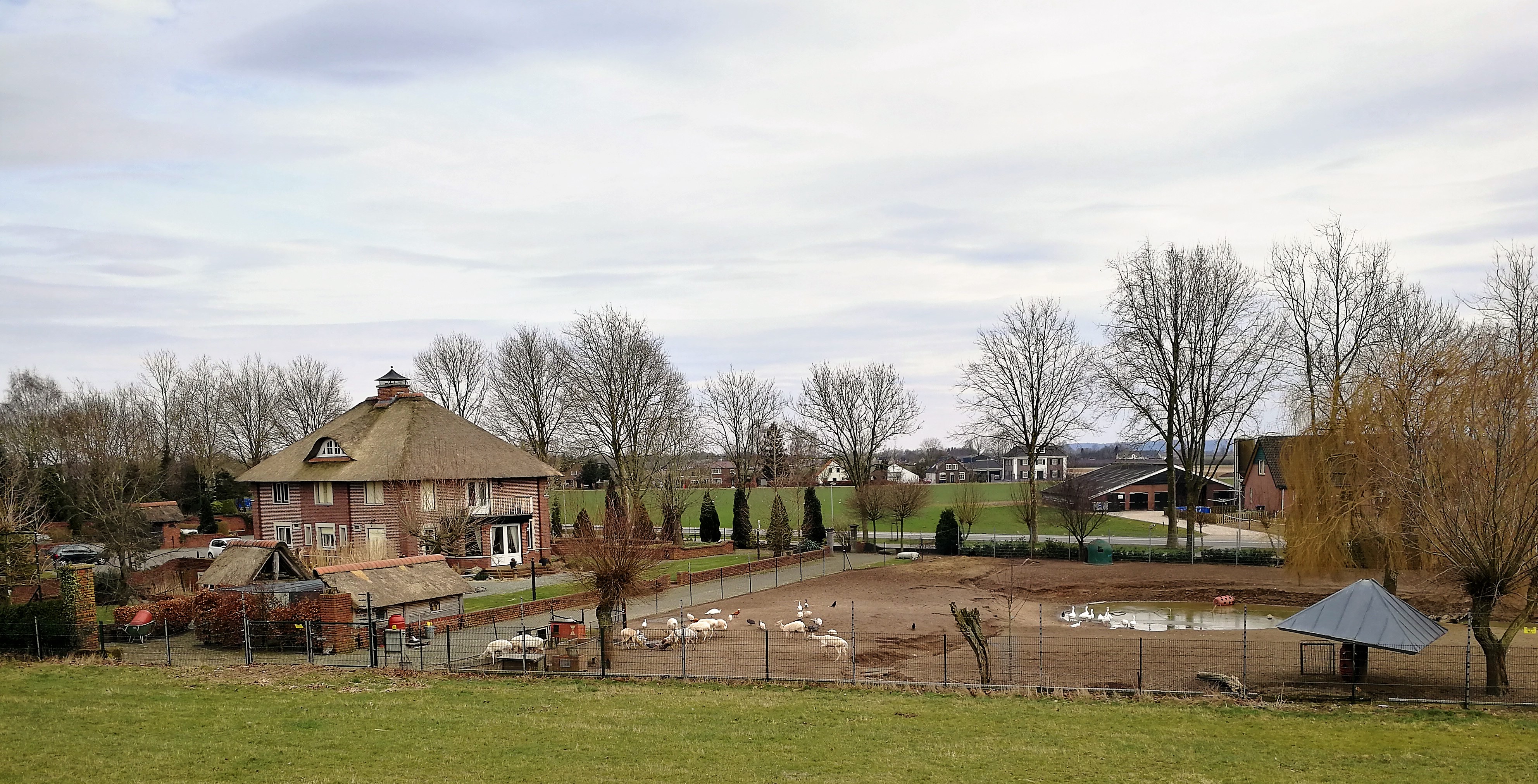 Bauernhof mit Rentieren hinter dem Deich