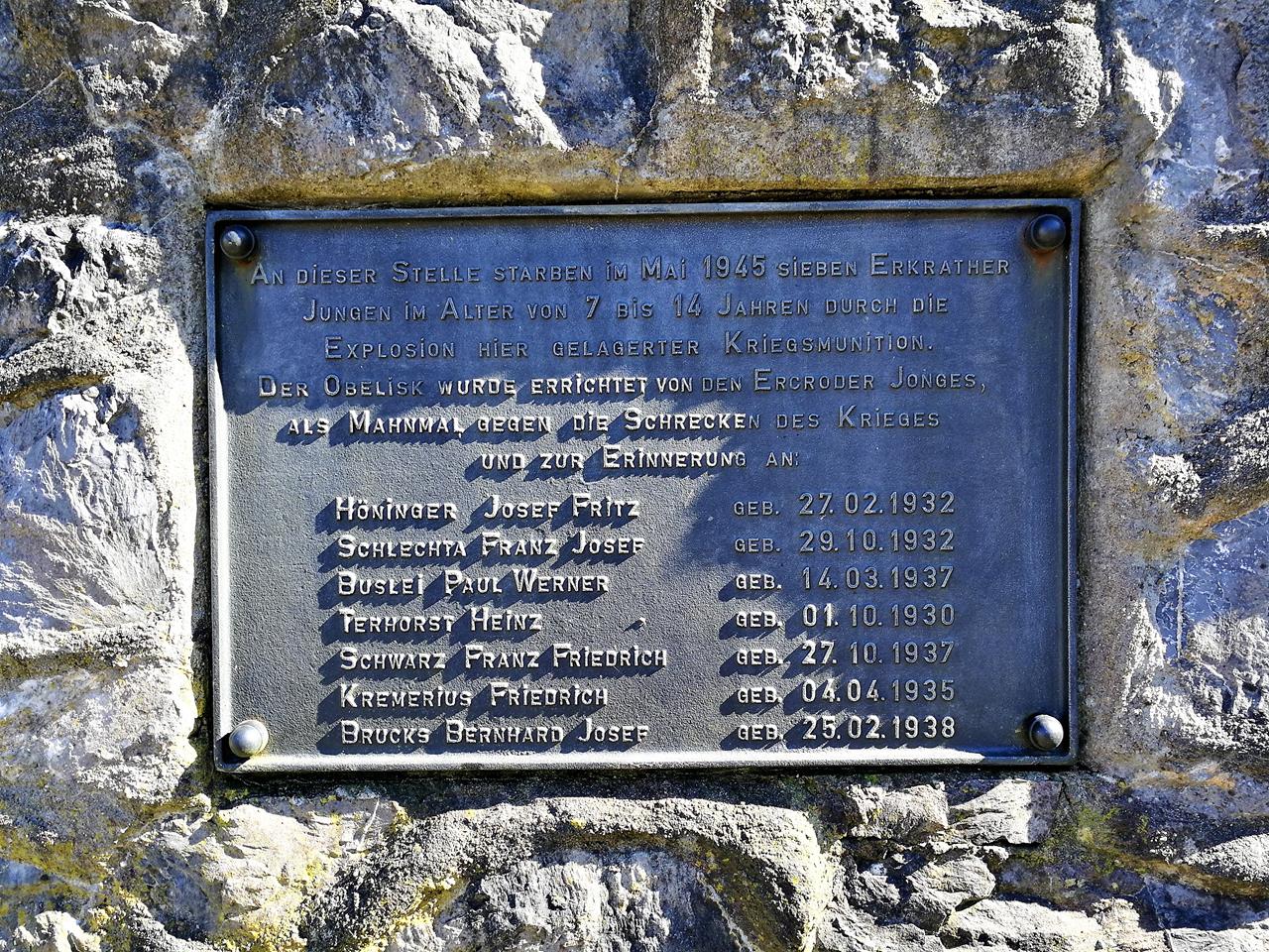 ← Zurück Weiter → Gedenktafel für sieben durch Munitionsreste am Ende des Zweiten Weltkriegs getötete Jugendliche