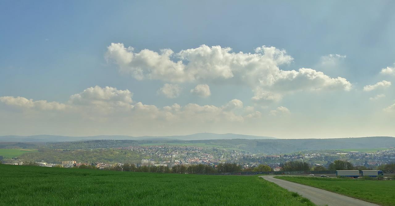 Blick vom Rügert zurück Richtung Idstein. Vorne die Autobahn A3.