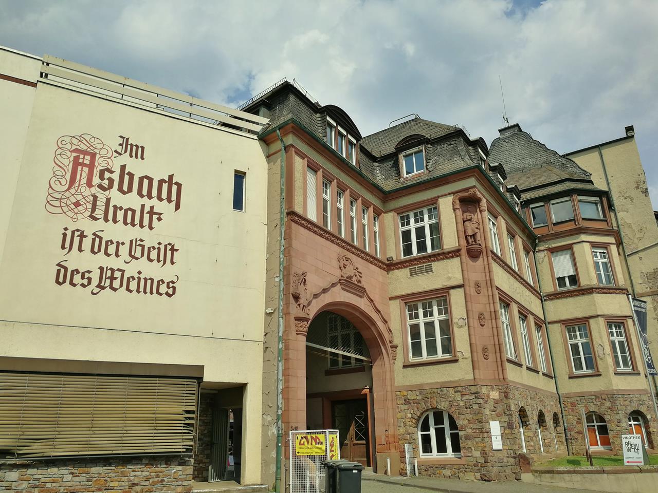 Die ursprüngliche Fabrikationsstätte von Asbach Uralt am Bahnhof von Rüdesheim