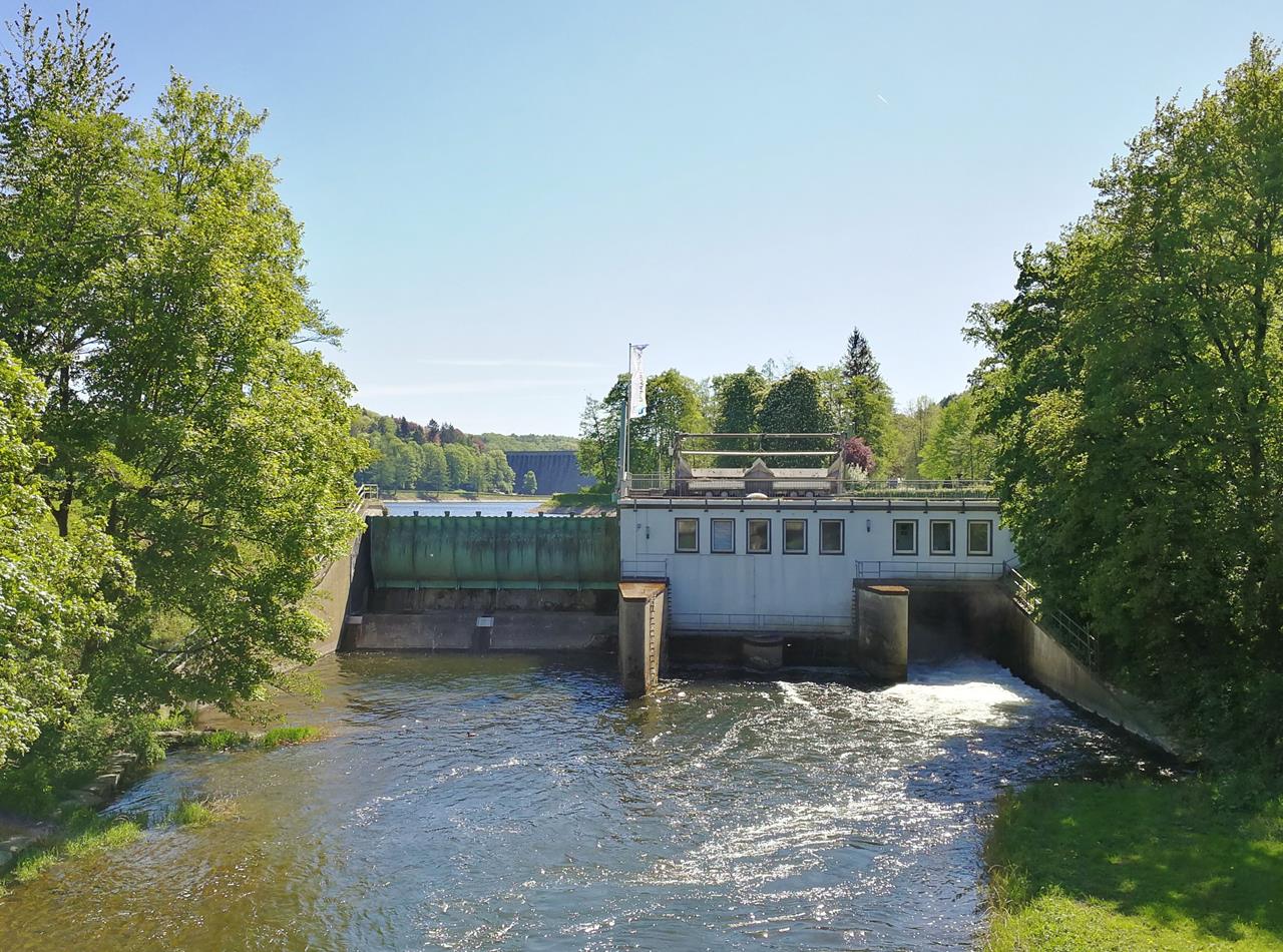 Hier fließt das Wasser aus dem Auslaufbecken in die Möhne ab