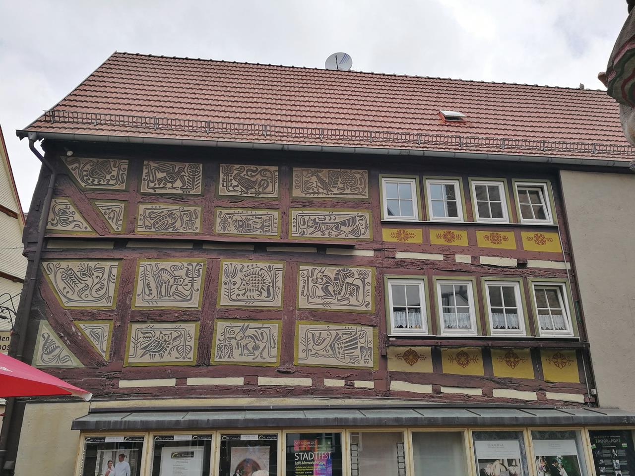Neuzeitliche Fachwerksbemalung mit Tiermotiven