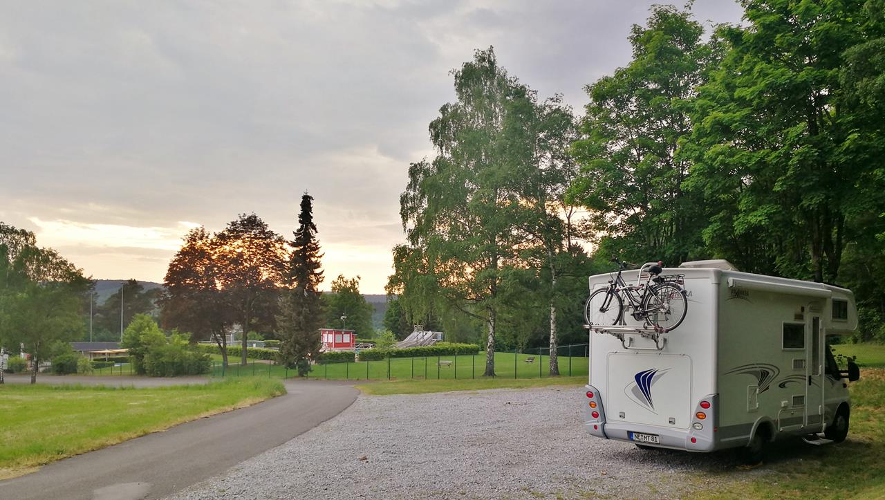 Unser Übernachtungsplatz am Freibad Wrexen