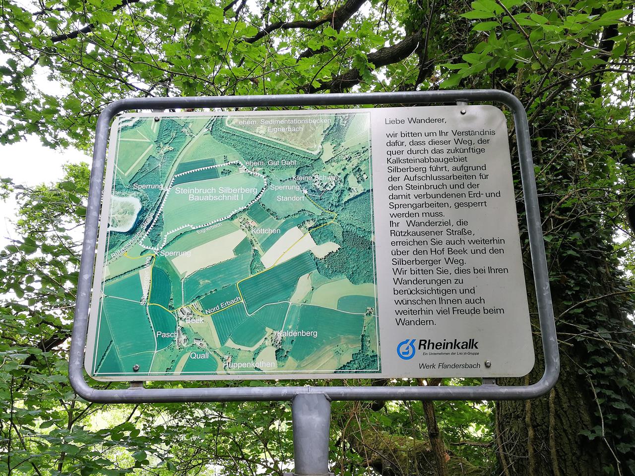 Hinweisschild am neuen Steinbruch Silberberg