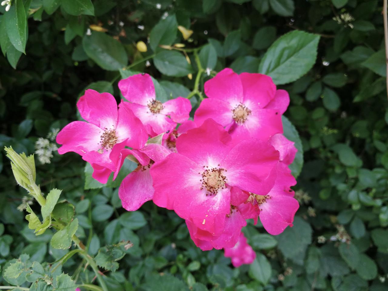 Schöne Wildrosen an einer Hecke