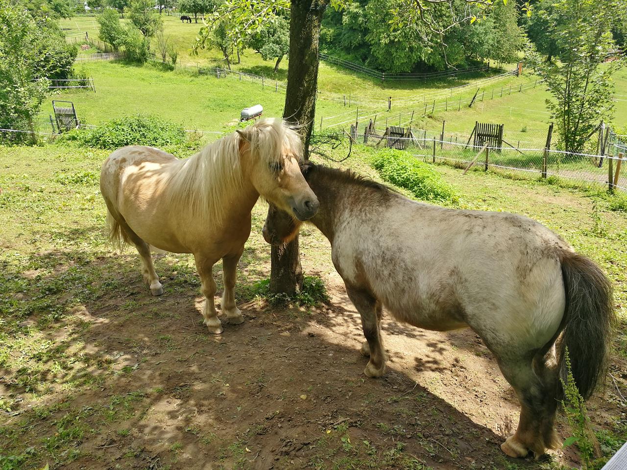 Beim Abstieg nach Unkel: Zwei süße Mini-Pferde auf einer Koppel