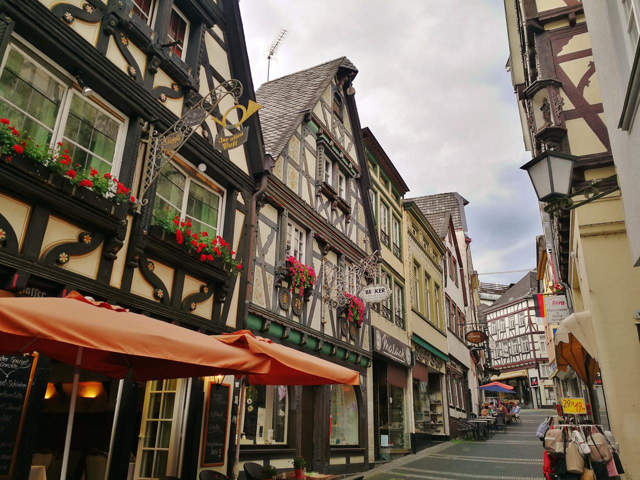 Gaststätten und Restaurants in der Rheinstraße, die hinauf zum Markt führt