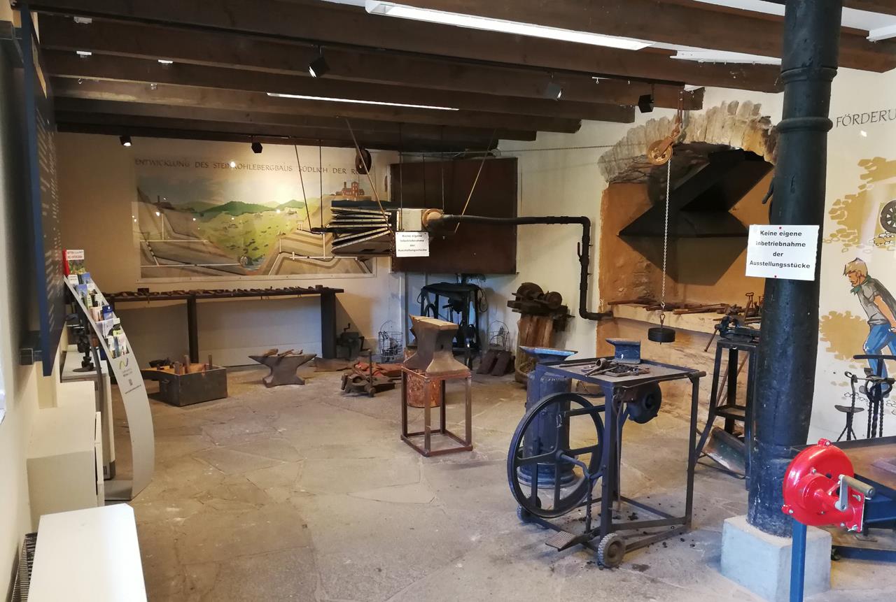 Rekonstruierter Schmiederaum im Erdgeschoss des Gebethauses