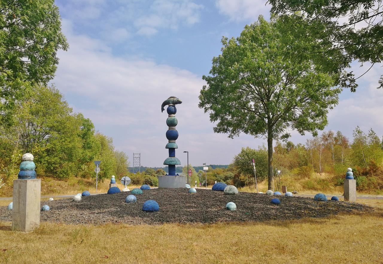 Kunst am Kreisverkehr oberhalb der Parkplätze