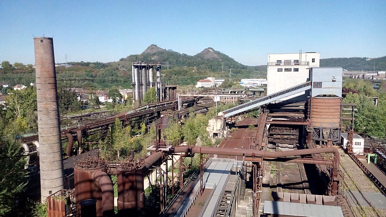 Im Hintergrund: Die beiden Schlackehalden der Anlage