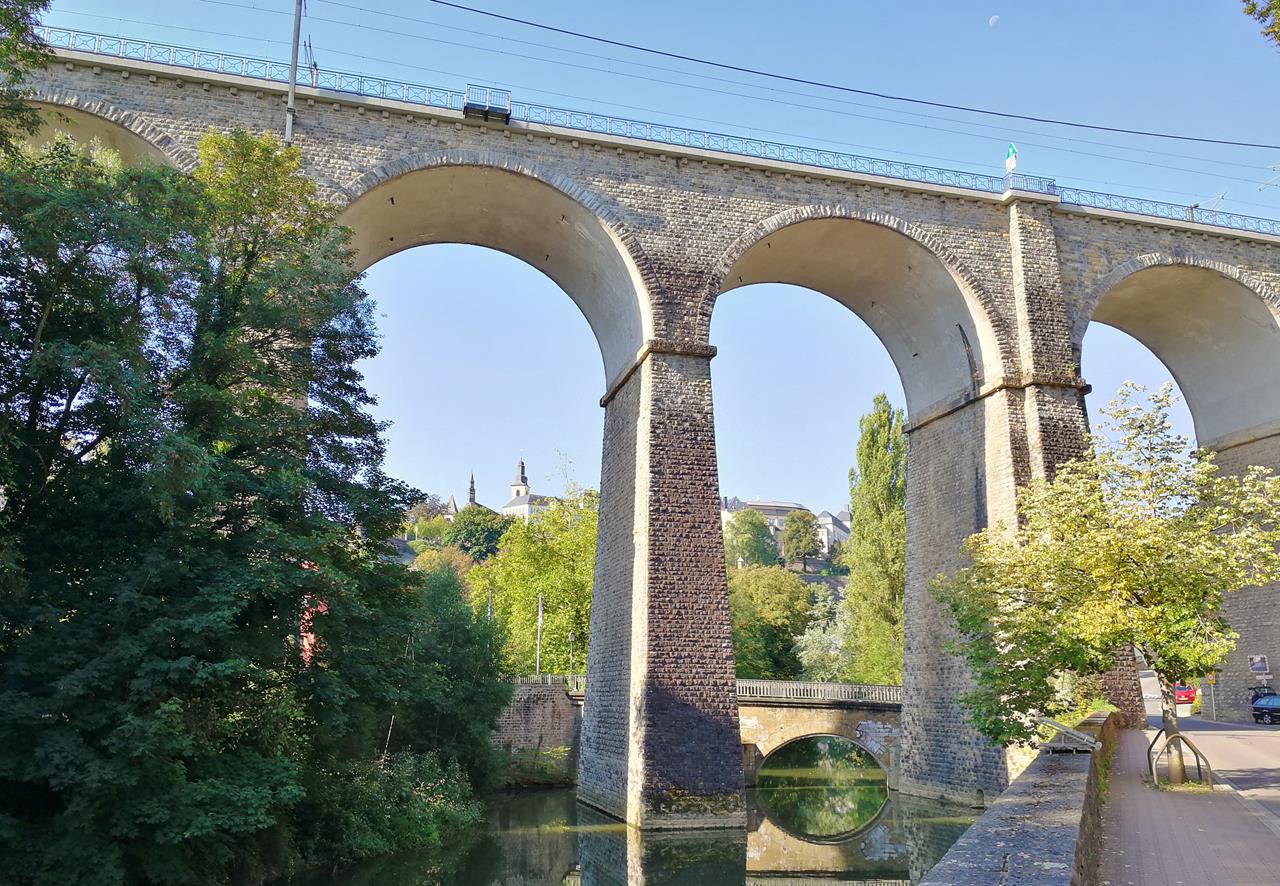 Die Passerelle, auch „Alte Brücke“ genannt, überspannt das Petruss-Tal