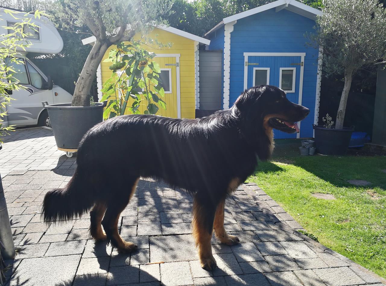 ← Zurück Weiter → Gut, dass heute so schönes Wetter ist. Da können die Hunde den ganzen Tag im Garten verbringen.