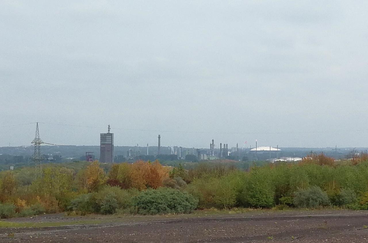 Blick von der Schurenbachhalde zum Nordsternpark, rechts die Arena Schalke