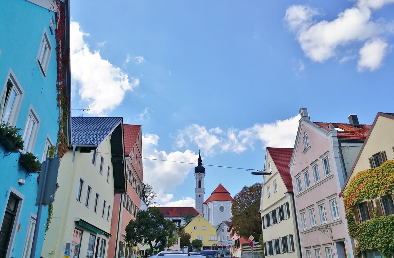 Blick von der Hauptstraße in Dießen hinauf zum Münster