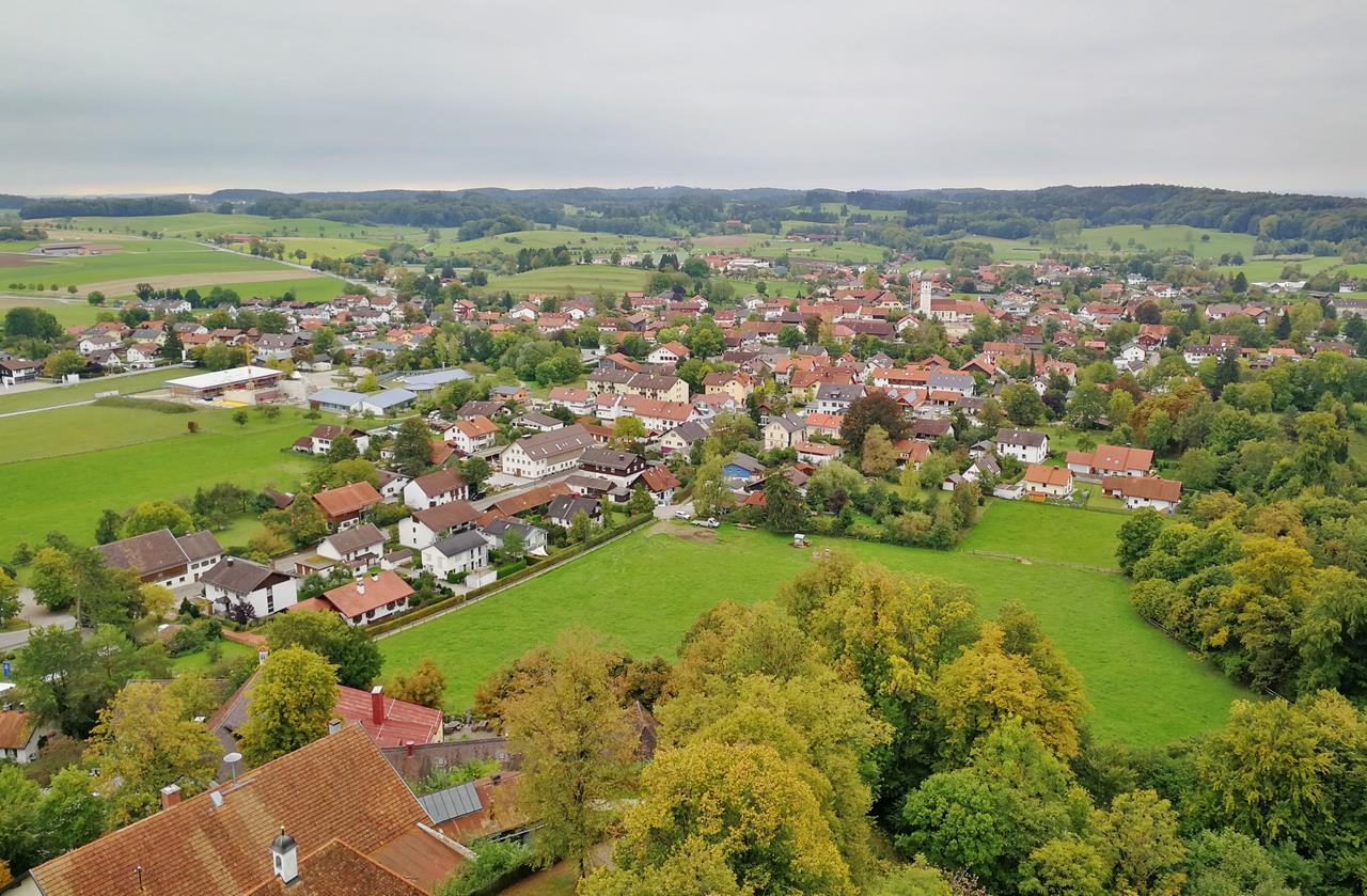 Blick auf den Ort Andechs von der Spitze des Kirchturms
