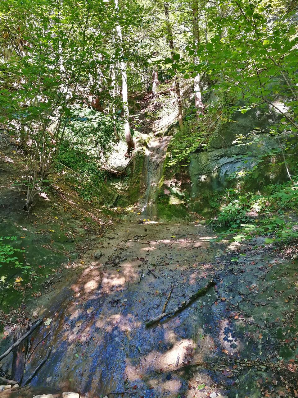 ← Zurück Weiter → Der Drachenstich: Eine romantische Schlucht mit einem kleinen Wasserfall – bei unserem Besuch aber fast trocken