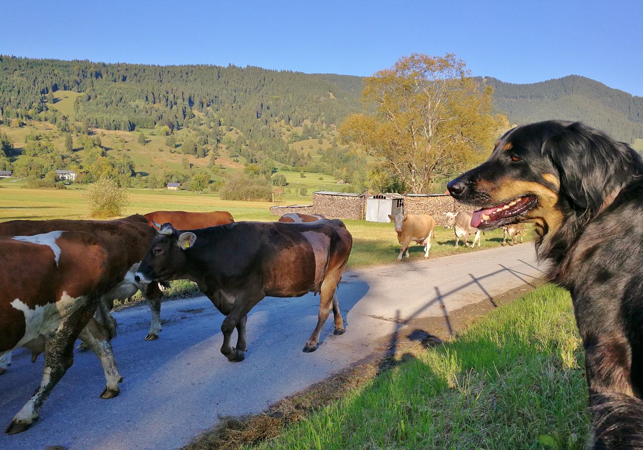 Doxi beobachtet die Tier ganz fasziniert