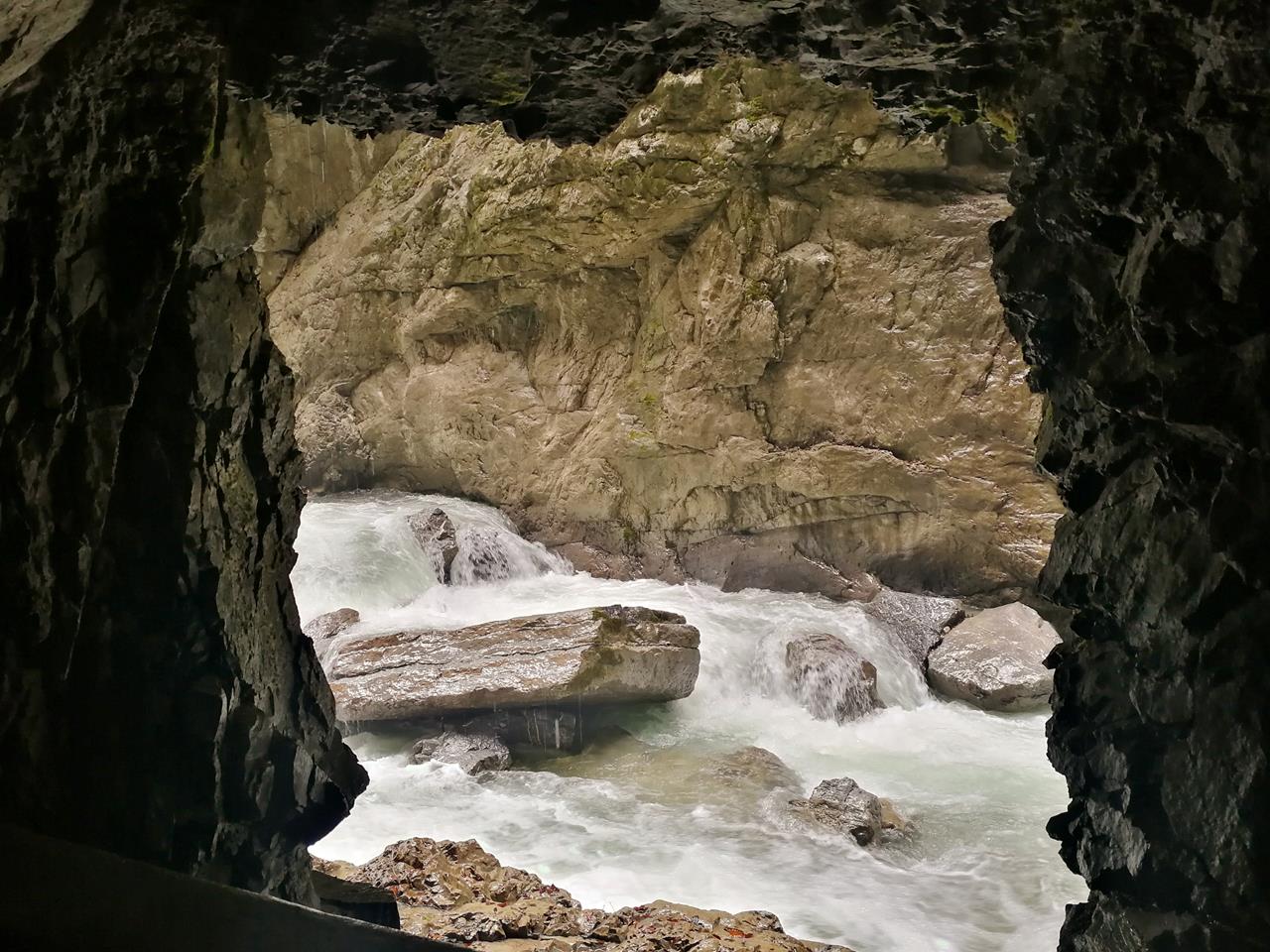 Blick aus einem Fenster im Tunnel auf die Klamm