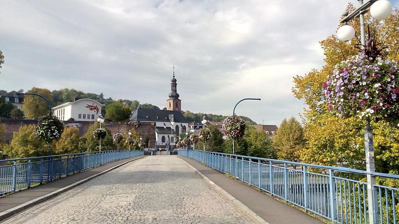 Alte Brücke über die Saar mit Blick zum alten Schloss