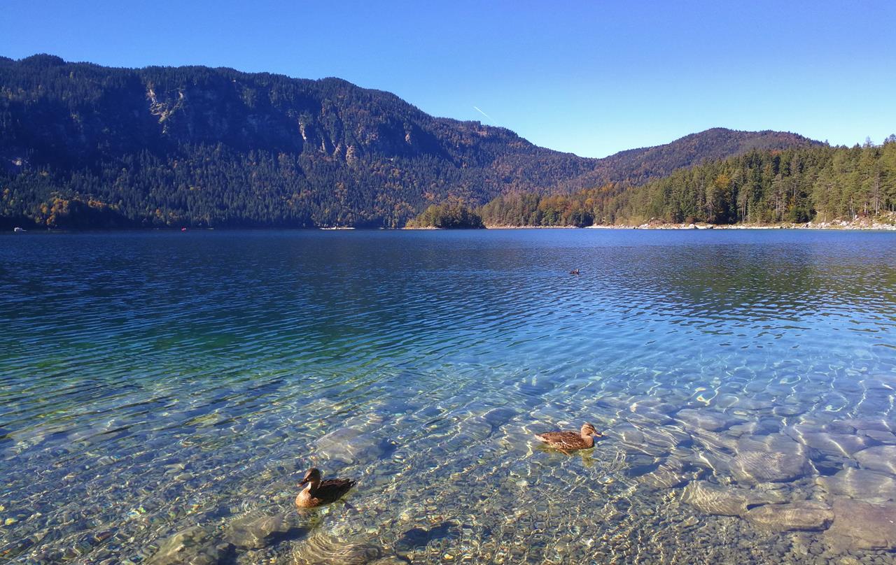 Die Enten wollen etwas abhaben von meiner Brotzeit