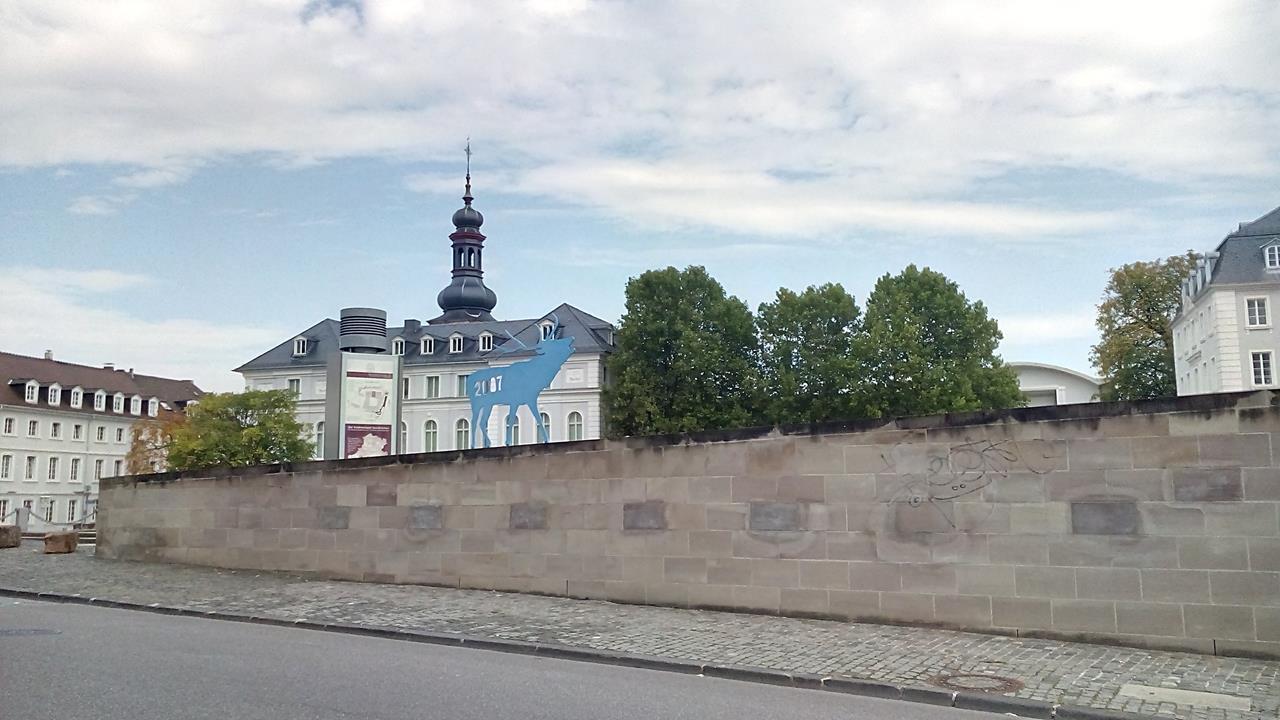 Da war er wieder, der Hirsch. Diesmal am Schlossplatz von Saarbrücken.