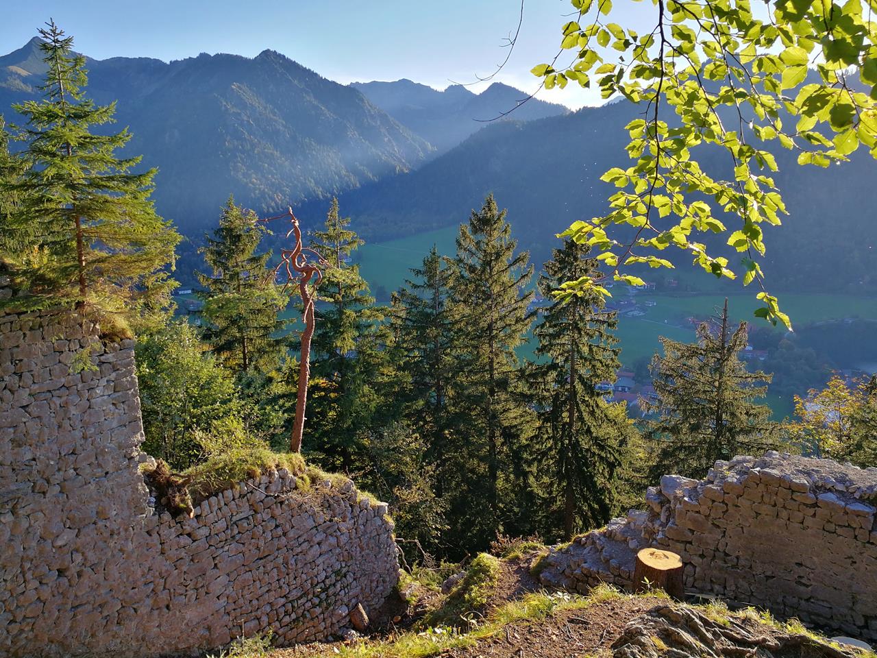 Die Ruine der Burg Hohenwaldeck über dem Südufer des Schliersees