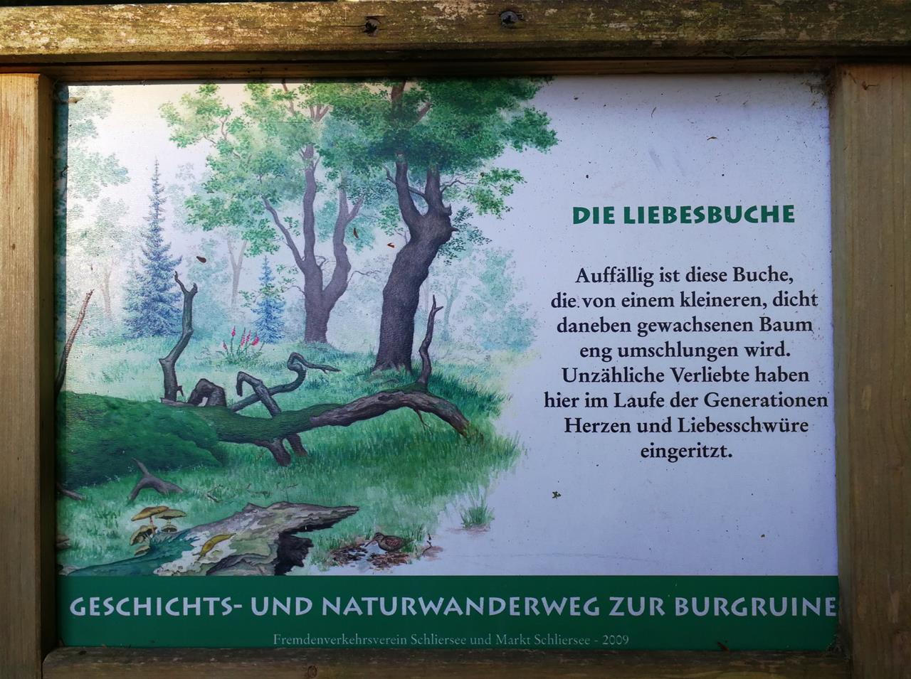 Infotafel am Liebesbaum vor der Ruine der Burg Hohenwaldeck