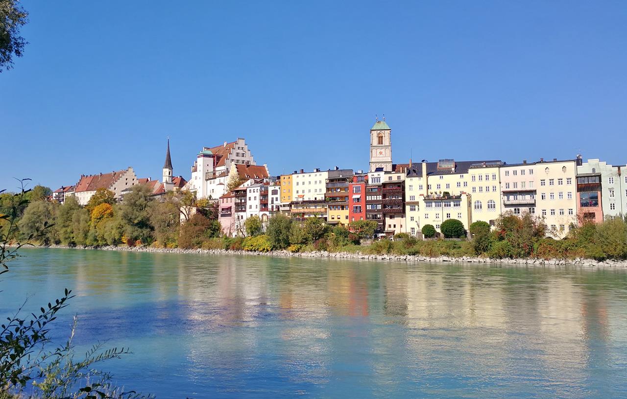 Blick vom Inn-Ufer auf die Altstadt von Wasserburg