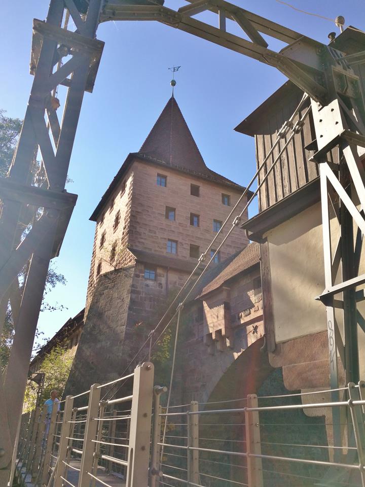 ← Zurück Weiter → Stadttor am Kettensteg, der ersten freischwebenden Flussbrücke in Deutschland von 1824
