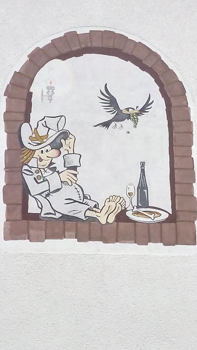 Wandgemälde an einem Weinbetrieb in Kiedrich