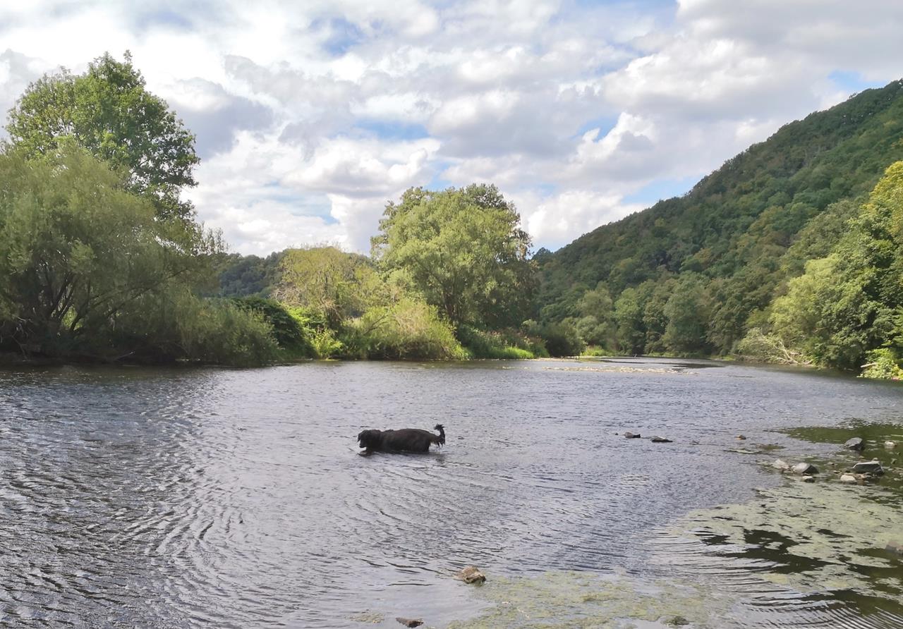hennef_jul_2020_095_1280x892 ← Zurück Weiter → Im Moment führt die Sieg so wenig Wasser, dass Doxi fast bis zur Flußmitte auf Grund laufen kann