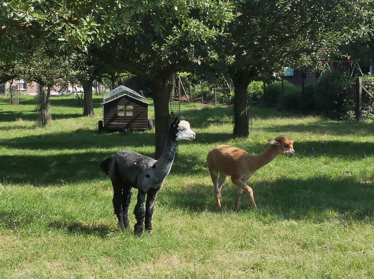 Süße geschorene Alpakas auf einem Bauernhof