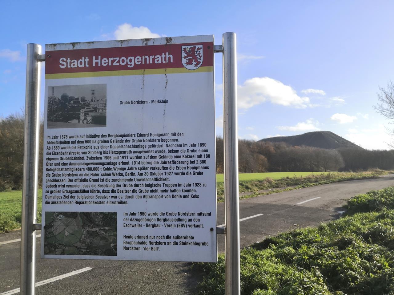 Infotafel an der stillgelegten Straße zur Halde