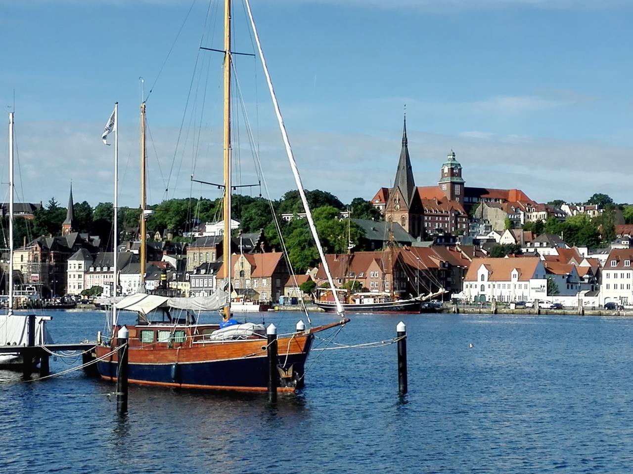 Blick über den Hafen zur Altstadt von Flensburg
