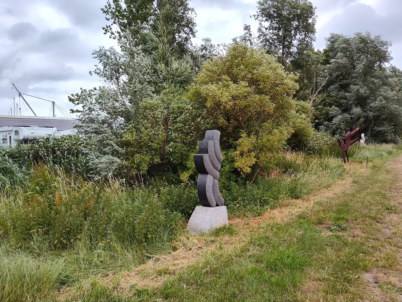 hoorn_juli_2025_067_1280x960 ← Zurück Weiter → Links das Womo auf dem Stellplatz des Yachthafens, rechts der Skulpturenpfad auf der Mole