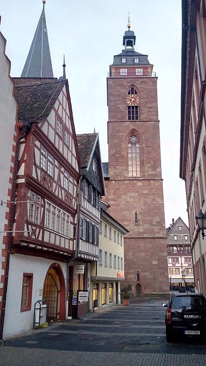 Altstadtgasse mit Blick auf den rechten Turm der Stiftskirche