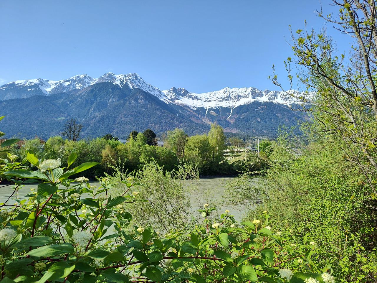 Blick über den Inn zu den Bergen
