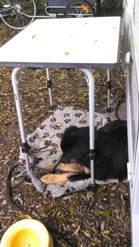 Klein Doxi vor dem Wohnmobil