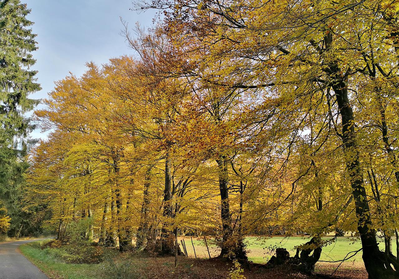 Mit Buchen umsäumte Weideflächen am ‚“Err Scheed“