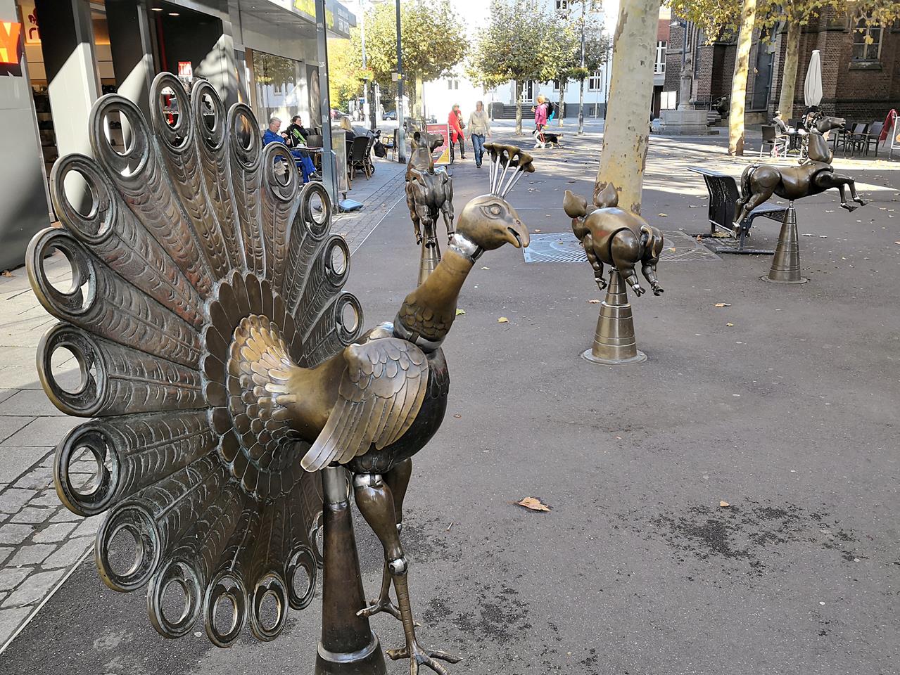 Tierskulpturen in der Fußgängerzone zwischen der Kirche und dem Alten Rathaus