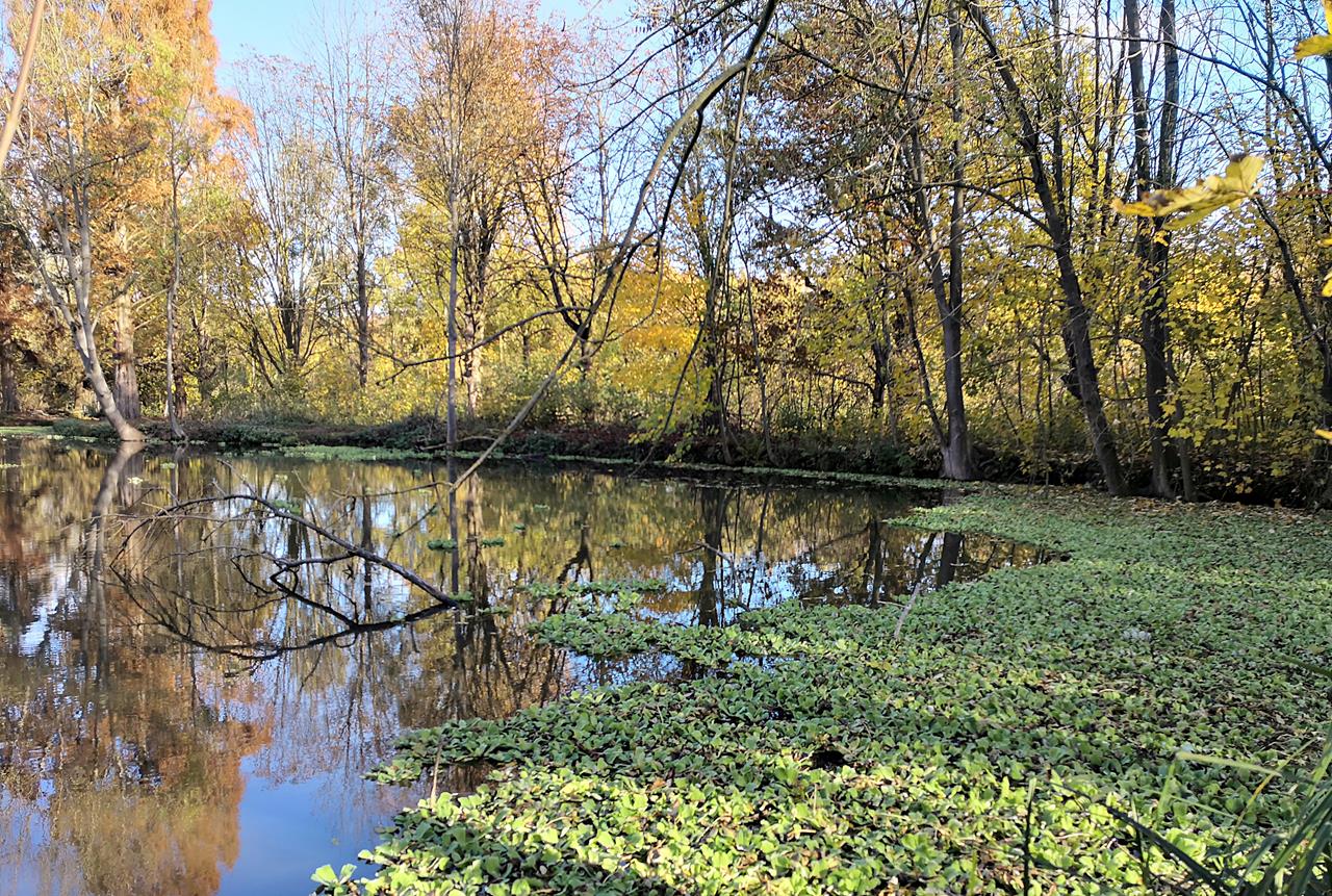 Die exotische Muschelblume überwuchert vor allem die stillen Seitenarme der Erft
