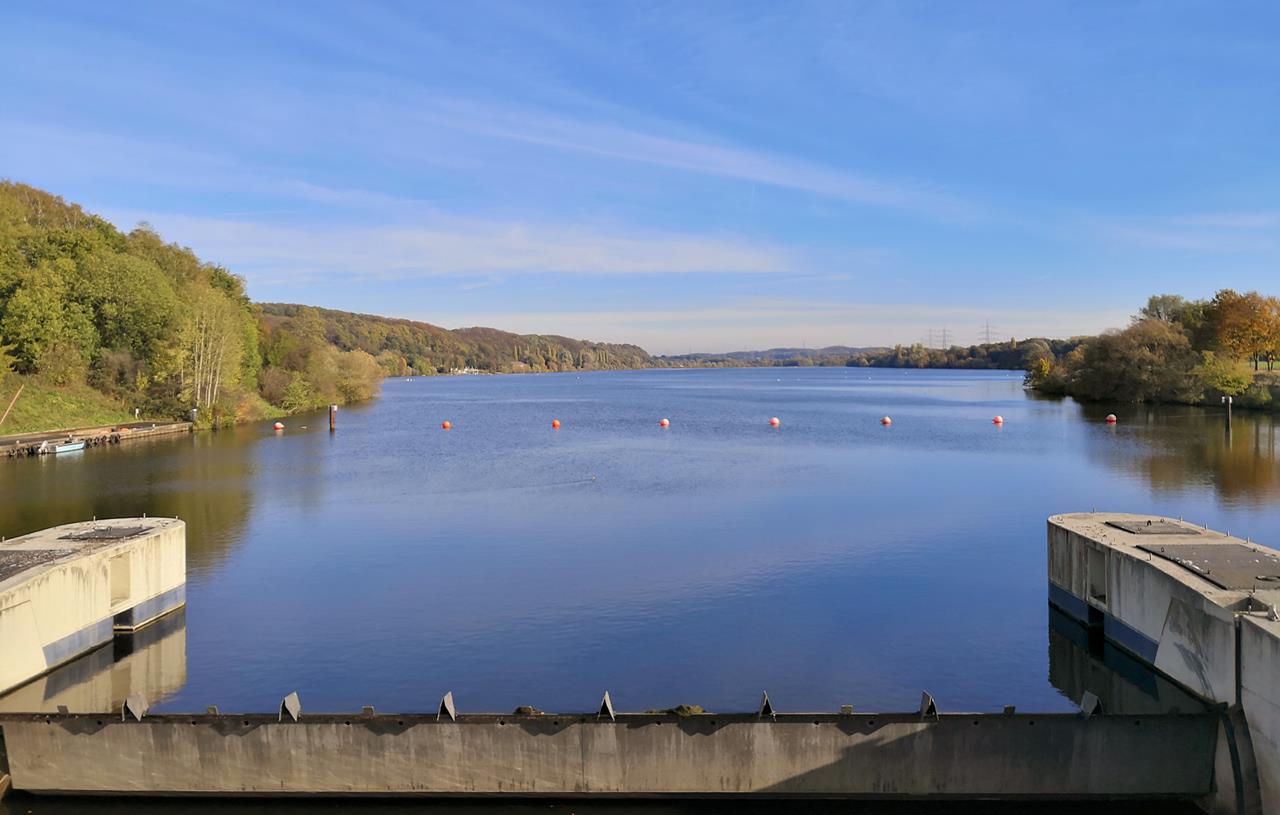 Blick vom Sperrwerk auf den Kemnader See