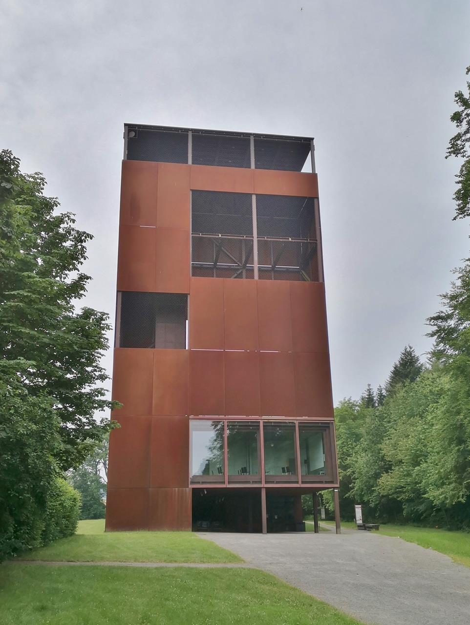 kalkriese_jun_2021_006_962x1280 ← Zurück Weiter → Turm des Museumsgebäudes, der einen Überblick über das vermutete Schlachtfeld ermöglicht