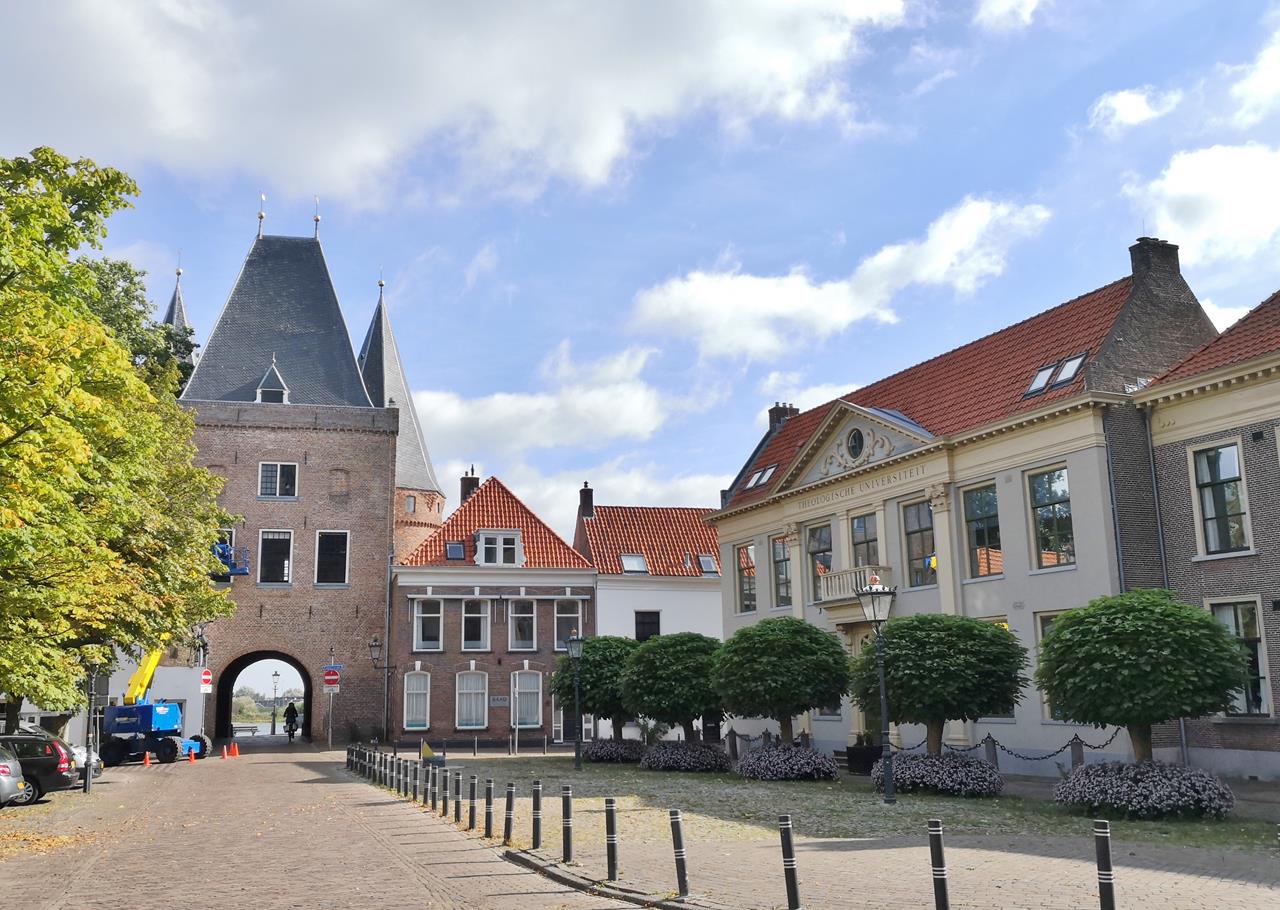 kampen_sep_2021_080_1280x910 ← Zurück Weiter → Historisches Stadttor Koornmarktpoort, Stadtseite. Rechts die theologische Universätit