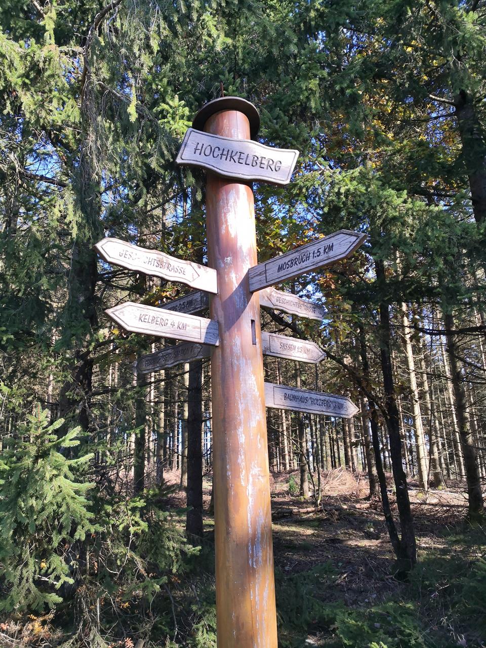 Wegweiser unterhalb des Gipfels der Hochkelbergs