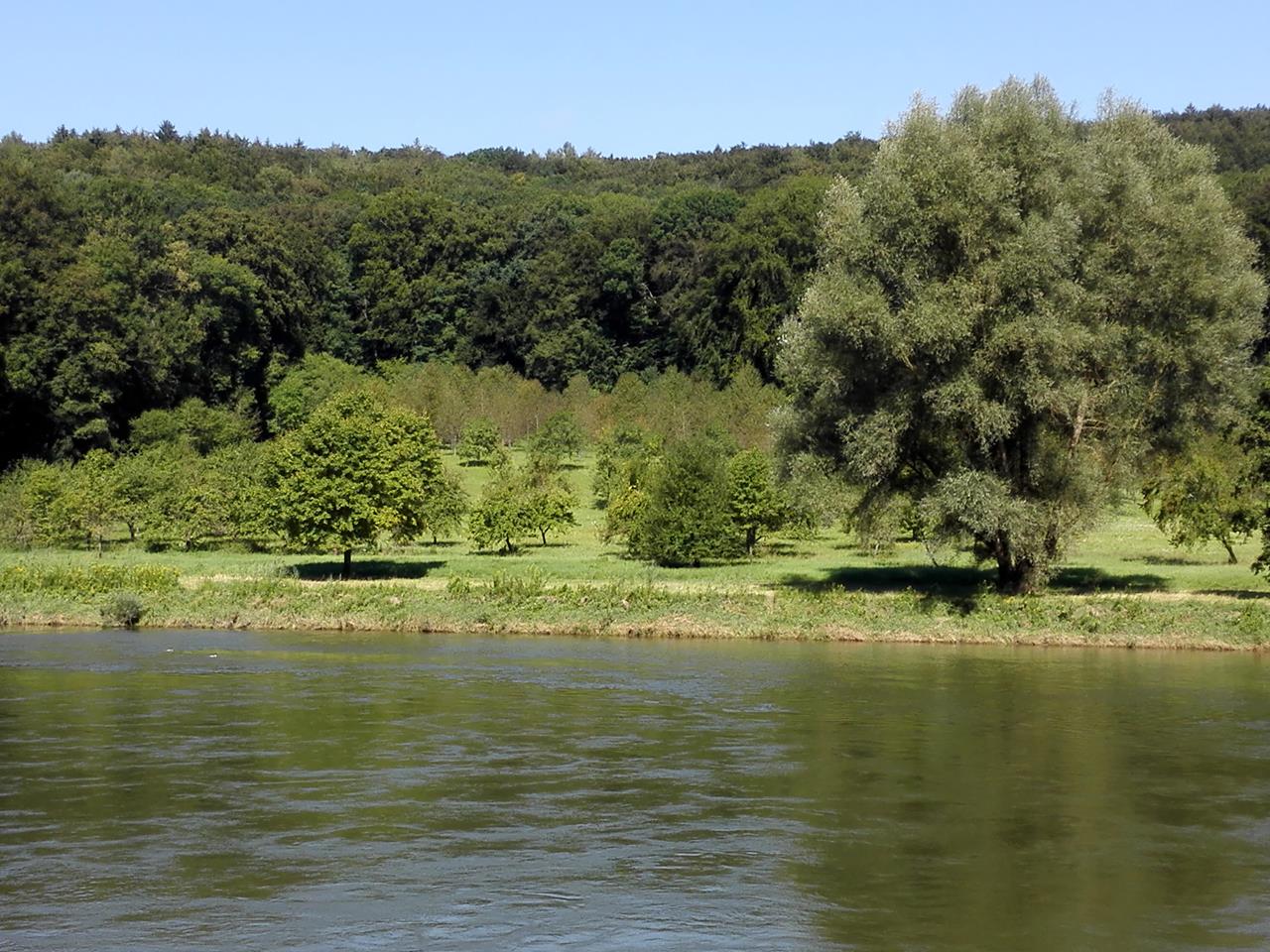 kelheim_aug_2016_033_1280x960 ← Zurück Weiter → Die Wipfelsfurt, eine kreisrunde Flachstelle am Ufer. Vermutlich das Ergebnis eines Meteoriteneinschlags beim Ries-Ereignis vor 15 Millionen Jahren.